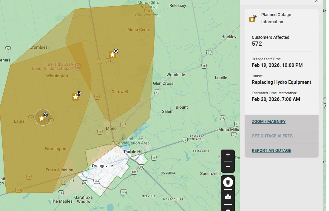 Upcoming Planned Hydro Outage in Amaranth - February 19, 2026