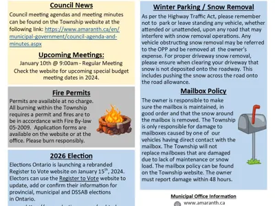 Please note that Council for the Township of Amaranth has called a Special Meeting of Council scheduled for Friday October 31st, 2025 at 12:00 p.m. (noon).