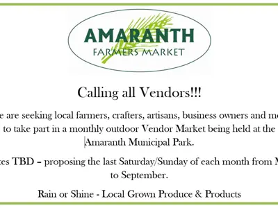 We are seeking local farmers, crafters, artisans, business owners and more to take part in a monthly outdoor Vendor Market being held at the Amaranth Municipal Park.